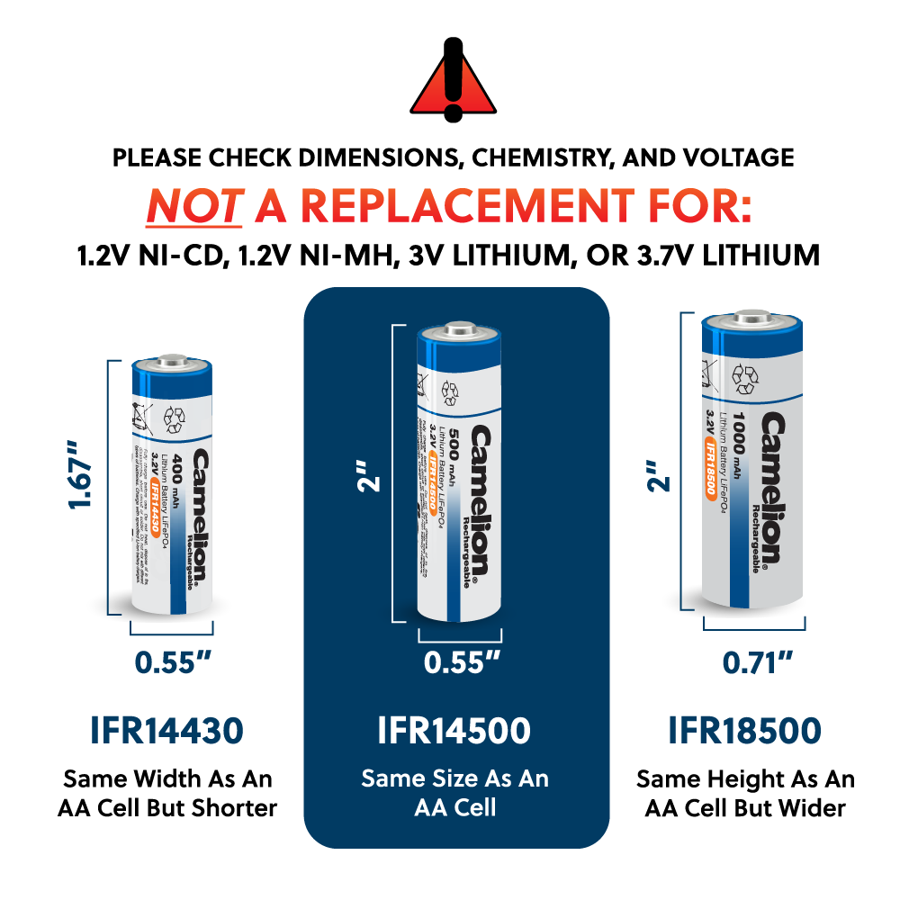 Camelion IFR14500 Lithium Iron Phosphate Rechargeable Battery 500mAh Blister Pack of 4 - For Solar Lights Lithium-Iron Phosphate Batteries are... Read more