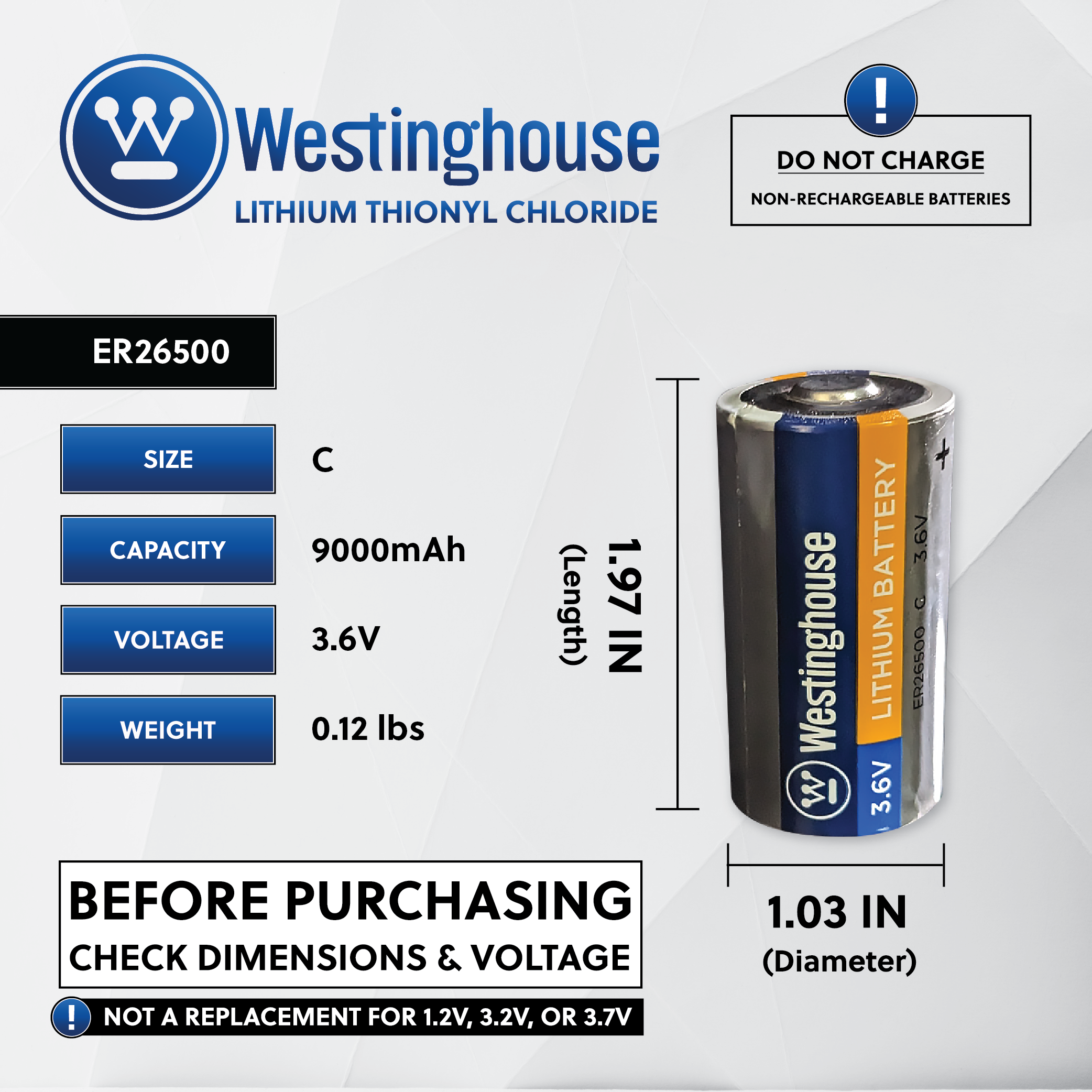Westinghouse ER26500 C Size 3.6V Lithium Primary Battery for Specialized Devices - Non Rechargeable