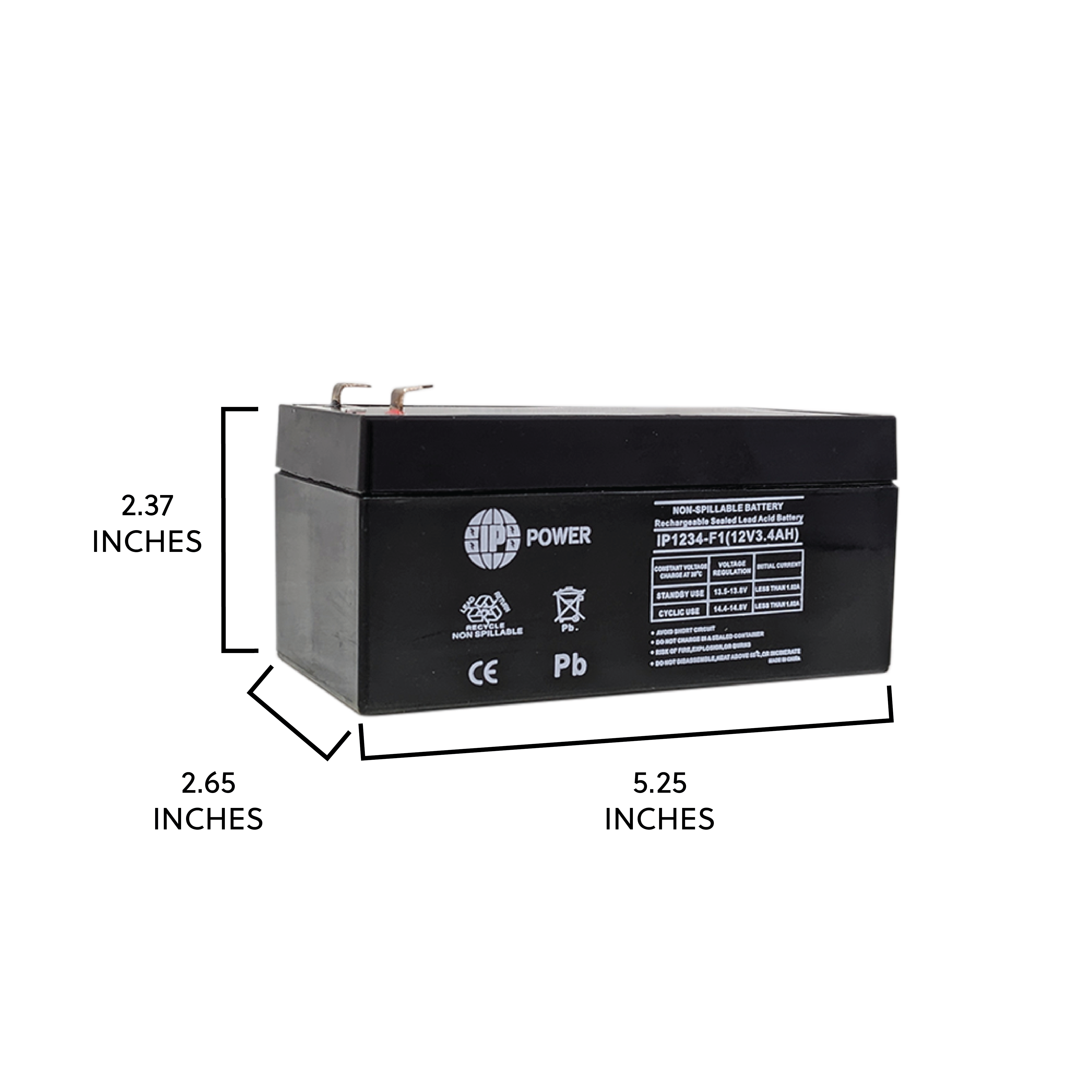 The IP Power IP1234 F1 Sealed Lead Acid Rechargeable Battery delivers reliable performance and long-lasting power for a wide range of electronic and backup applications. Engineered with advanced Absorbent Glass Mat (AGM) technology, this battery provides superior efficiency, dependable standby power, and a floating life of up to 10 years. Ideal for use in medical devices, UPS systems, security equipment, and emergency lighting, the IP Power IP1234 F1 operates flawlessly across a wide temperature range for consistent performance in demanding environments. Its maintenance-free and non-spillable design ensures safe, hassle-free operation, while compliance with UL, IEC, JIS, and BS standards guarantees trusted quality and reliability.